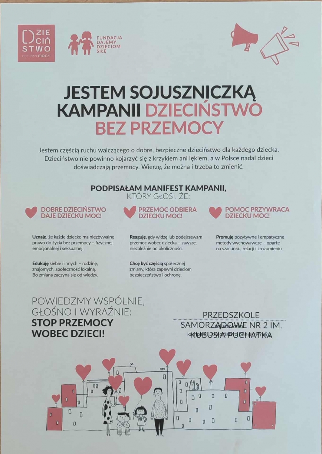 Nasze przedszkole bierze udział w KAMPANII DZIECIŃSTWO BEZ PRZEMOCY